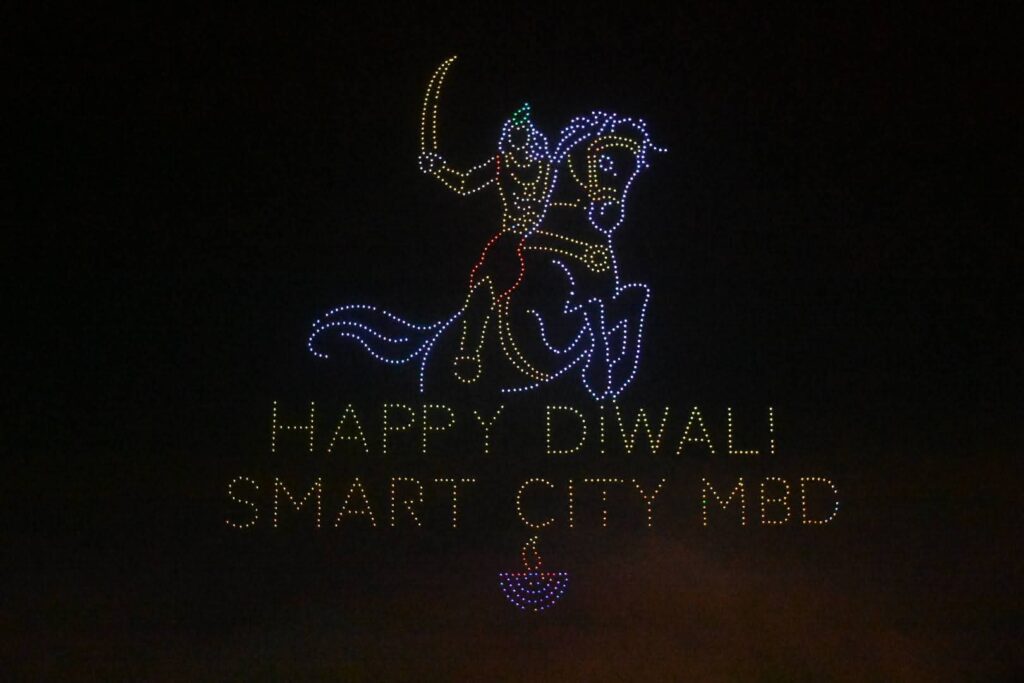 दीपों की सुनहरी रोशनी, संगीत की गूंज और नागरिकों की भीड़ ने शहर को उत्सव में डुबो दिया।कार्यक्रम का सबसे आकर्षक हिस्सा था बुद्धि विहार फेस-दो में हुआ ड्रोन शो। यहां 1500 ड्रोन से आकाशीय रामलीला का मंचन किया गया। पहली बार शहरवासियों ने आसमान में भगवान श्रीराम के जीवन, मर्यादा और आदर्शों को इतने भव्य रूप में देखा। शो में राम-रावण युद्ध, सिंदूर ऑपरेशन, और प्रेरणादायक दृश्यों के साथ स्वच्छता, सामाजिक एकता, और महिला सशक्तिकरण जैसे संदेशों को कलात्मक तरीके से प्रस्तुत किया गया।