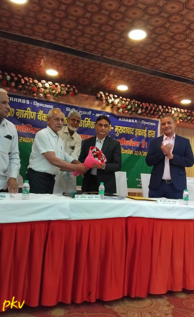 मुरादाबाद के सिविल लाइन स्थित मिड टाउन क्लब में बुधवार को उत्तर प्रदेश ग्रामीण बैंक सेवानिवृत्ति कार्मिक सेवा समिति द्वारा एक विशाल जनसभा का आयोजन किया गया। इस कार्यक्रम में जिले भर से बड़ी संख्या में सेवानिवृत्त बैंक कर्मचारियों ने भाग लिया। सभा का मुख्य उद्देश्य उनकी समस्याओं, मांगों और समाधान पर विचार-विमर्श करना रहा।